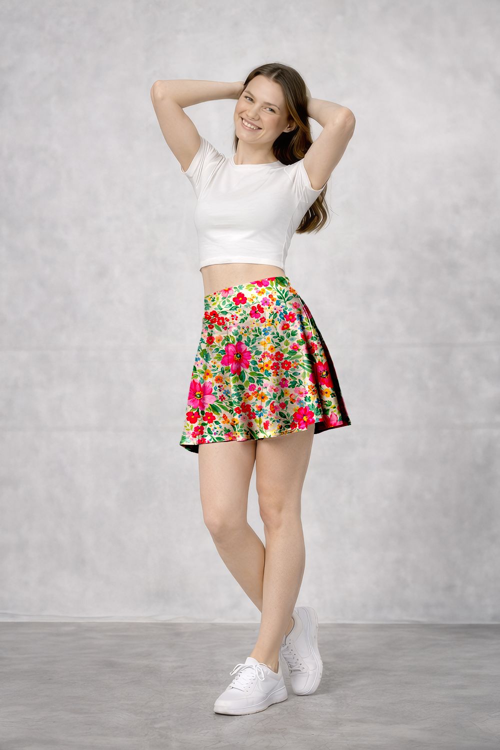 XS’den 2XL bedene kadar tüm ölçülerde üretilen bu şık etek, yaz ve bahar kombinleri için idealdir.