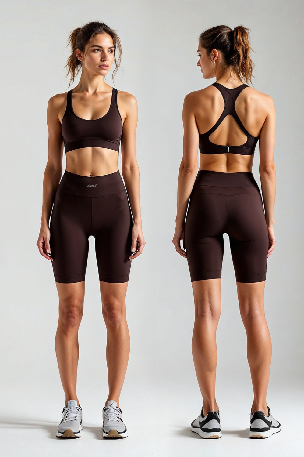 Kadın Düz Kahverengi Kısa Tayt Model No : 001 - Jolt Sport