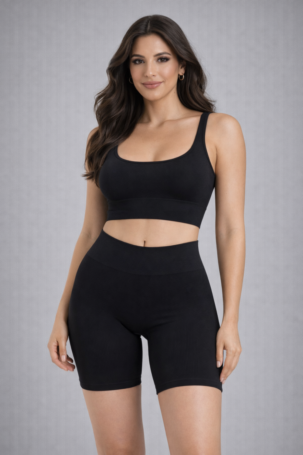 Kadın Seamless Bisiklet Tayt Yüksek Bel, Toparlayıcı, Esnek Kumaş Siyah